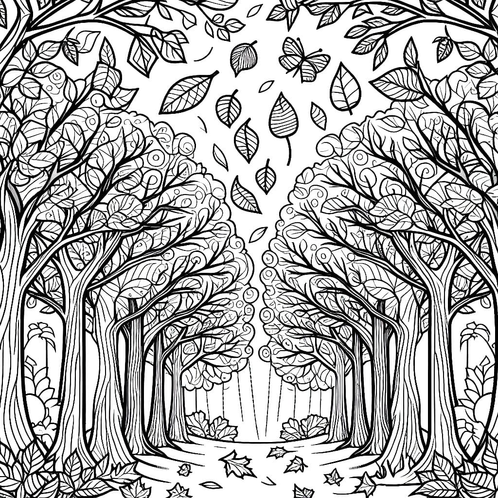 Descrizione : Alberi Autunnali con Tappeto di Foglie da colorare. Scarica, stampa o colora subito online!