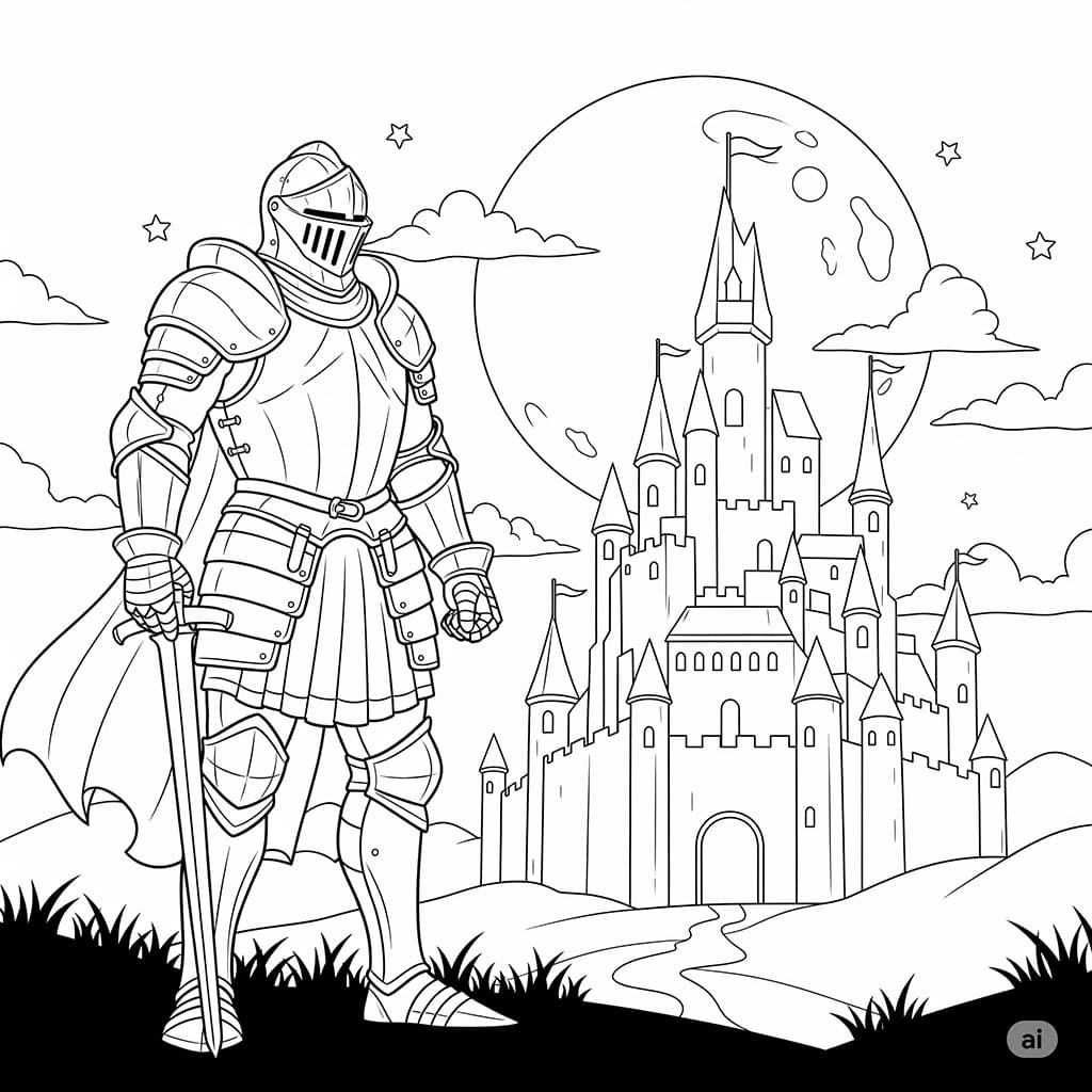 Descrizione : Cavalieri e castelli da colorare. Scarica, stampa o colora subito online!