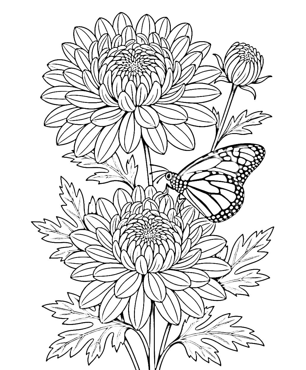 Descrizione : Crisantemi e farfalla da colorare. Scarica, stampa o colora subito online!