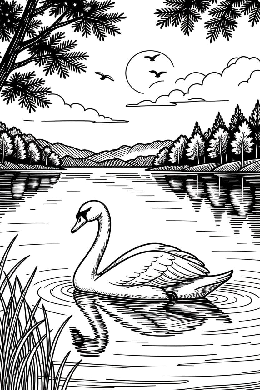 Descrizione : Cigno di lago da colorare. Scarica, stampa o colora subito online!