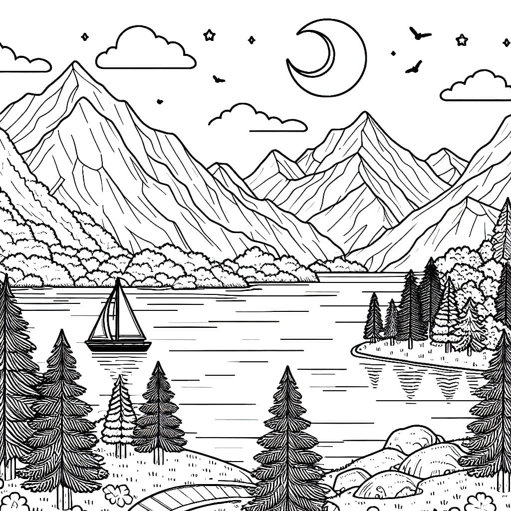 Descrizione : Lago e luna da colorare. Scarica, stampa o colora subito online!