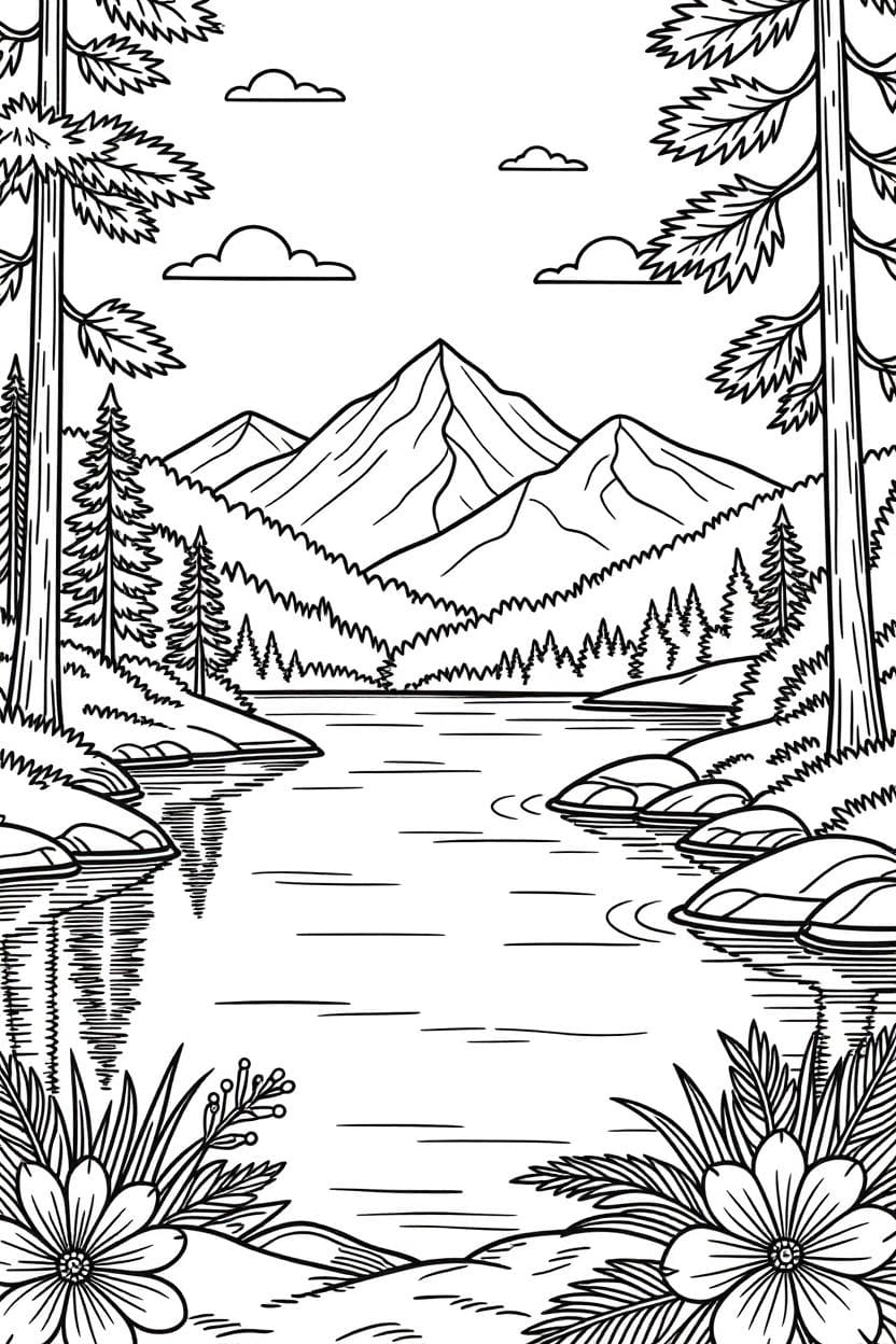Descrizione : Lago e montagna da colorare. Scarica, stampa o colora subito online!