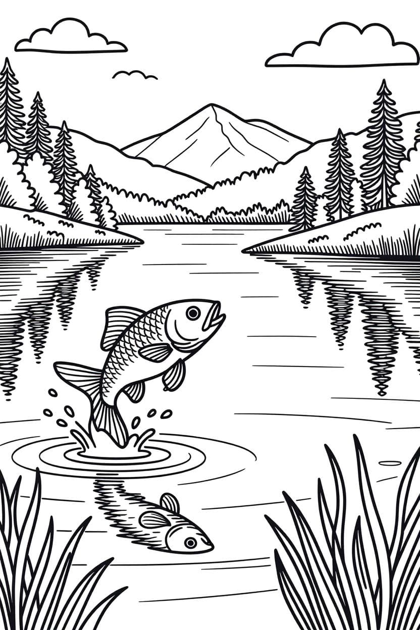 Descrizione : Lago e pesce da colorare. Scarica, stampa o colora subito online!