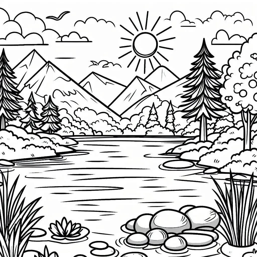 Descrizione : Lago e sole da colorare. Scarica, stampa o colora subito online!