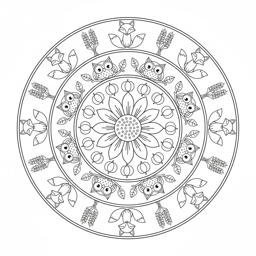 Descrizione : Mandala autunnale con gufo da colorare. Scarica, stampa o colora subito online!