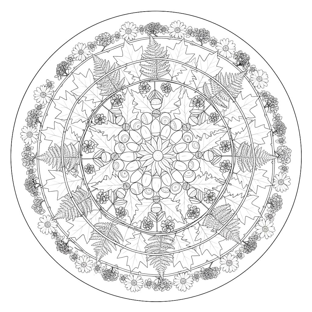Descrizione : Mandala autunnale molto complesso da colorare. Scarica, stampa o colora subito online!