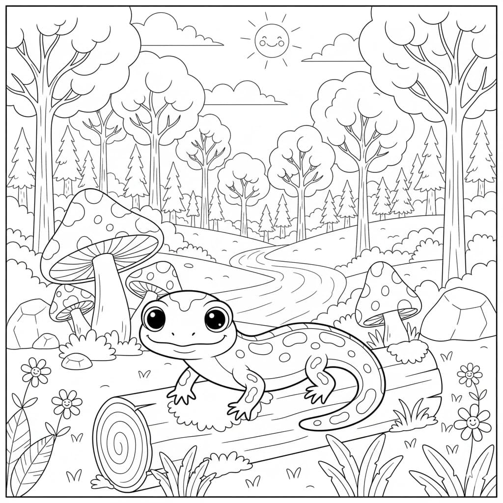 Descrizione : Piccola salamandra nella foresta da colorare. Scarica, stampa o colora subito online!