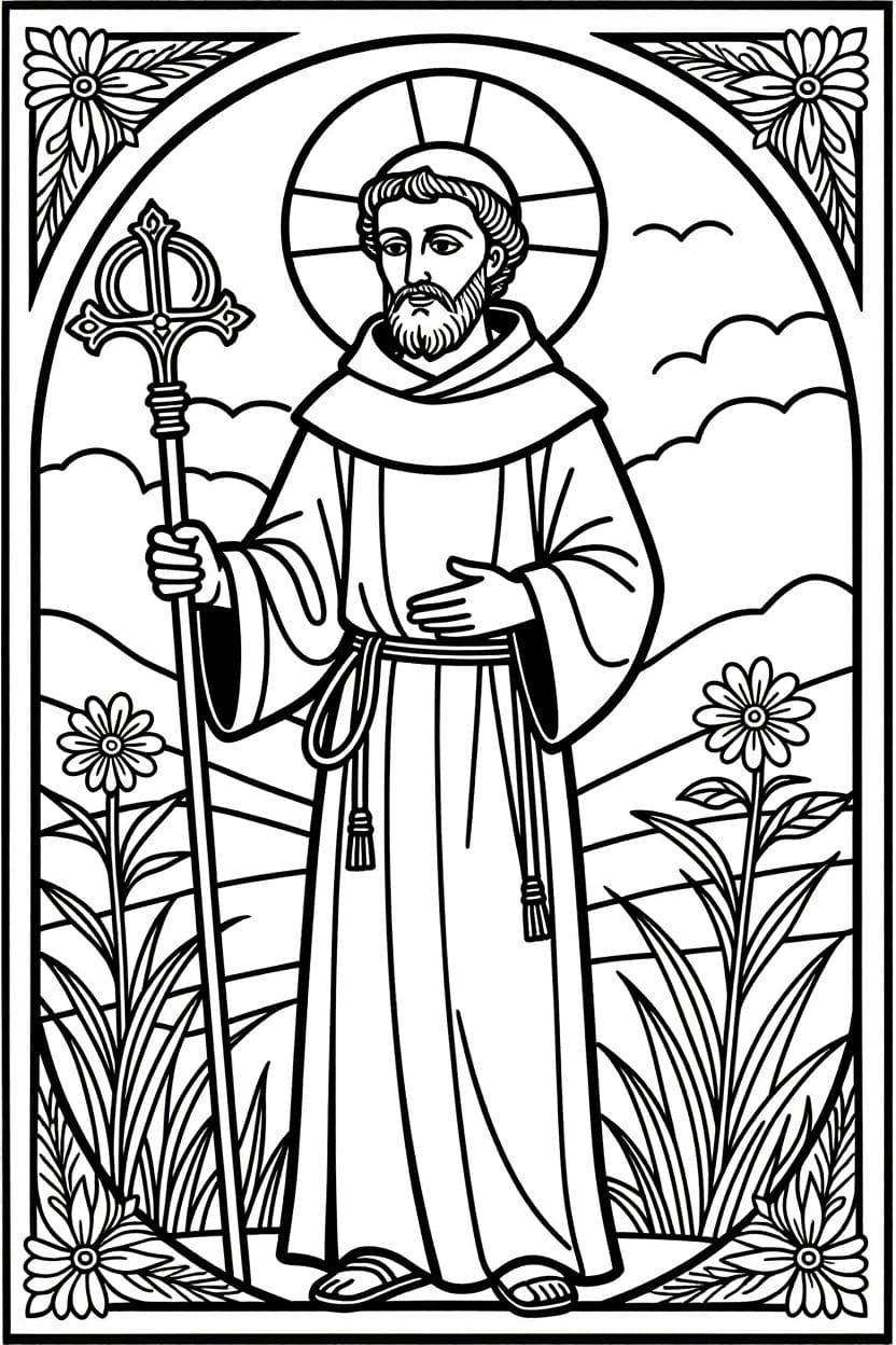 Descrizione : Il maestoso San Francesco da colorare. Scarica, stampa o colora subito online!