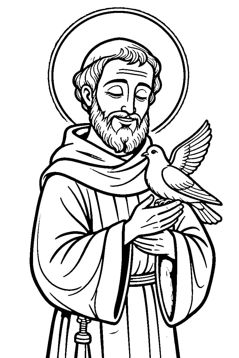 Descrizione : San Francesco con l’uccello da colorare. Scarica, stampa o colora subito online!